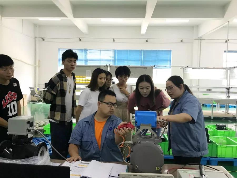 上海理工大學(xué)學(xué)生在城燃裝配車間觀摩渦輪流量計(jì)產(chǎn)品檢測(cè)過(guò)程