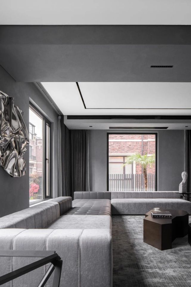 起居室簡潔明快,一組沙發(fā)+茶幾搭配,簡單實用,空間更加寬松。微水泥空白設(shè)計與灰白搭配,使空間更加可能。